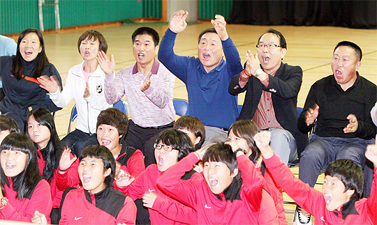 한국의 마지막 키커 장슬기의 발끝을 떠난 공이 일본 골문을 가르는 순간, 완주 한별고 체육관은 환호성으로 가득 찼다. 그리고 이를 숨죽여 지켜보던 김빛나 선수 어머니의 눈에선 눈물이 흘러 내렸다.