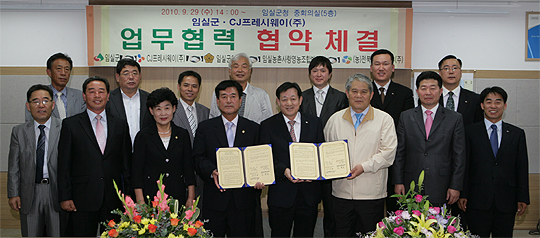 협약 내용은 CJ가 임실지역 농가를 대상으로 부추와 마늘,홍초 및 고춧가루 등의 농산물을 계약재배, 전량을 매입한다는 조건이다.
