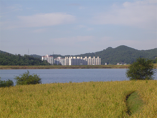 고창읍에 있는 노동저수지는 읍내의 아파트에서도, 모양성 성곽에서도 보인다. 주민들이 모양성을 산책하면 저수지 특유의 아담하면서도 아름다운 풍광을 선사한다. (desk@jjan.kr)