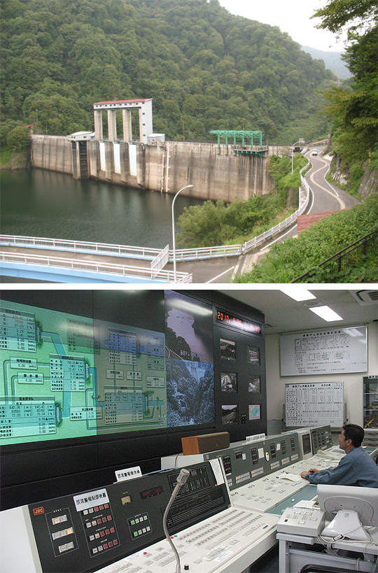 도네강 상류 군마현 미나카미 지역에 1958년 완공된 후지와라 댐의 전경(위)과 후지와라댐 관리사무소 (desk@jjan.kr)