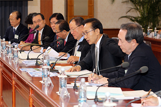 이명박 대통령은 26일 "세계경제가 회복되는 과정에서 더 치열한 경쟁이 생길 것"이라며 "한국 기업들이 더 긴장하고 정부도 그런 관점에서 긴장해야 하며, 지방자치단체에서도 많은 혁신이 필요하다"고 말했다.