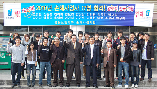 보험감독원이 주관하고 보험개발원이 시행하는 손해사정사 시험에서 최근 몇 년간 지속적으로 합격자를 배출해 보험 관련 명문학과로 자리를 굳히고 있는 전주대 금융보험학과가 올해 대박을 터뜨렸다.