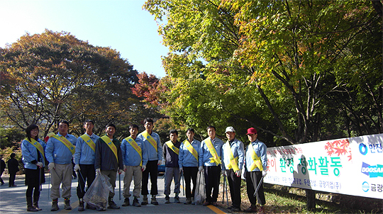 한진중공업과 두산건설, 금광기업(주) 주관으로 실시된 이날 행사에서 참석자들은 내장사와 벽련암으로 이어지는 등산로 주변의 쓰레기를 줍고 등산객들에게 깨끗한 자연환경조성을 위한 홍보활동을 펼쳤다.