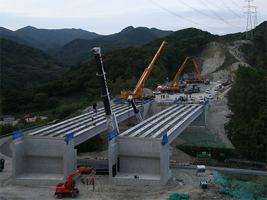 (주)인터컨스텍은 2004년 국내 최초로 45m 길이의 PSC-I형 거더를 신대구~부산고속국도 2공구 현장에 시공한 이후 다시한번 PSC-I형 거더교의 새로운 이정표를 세우게 되었다.