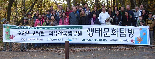 덕유산국립공원사무소(소장 박문규)는 지난달 30일 2일 일정으로 '주한 외교사절 초청 덕유산국립공원 팸투어'를 실시했다.