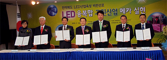 광전자는 전북지역을 광반도체의 메카로 만들어가는 선두 주자의 역할을 하고 있다. 사진은 지난해 2월 열린 전라북도 LED산업 육성 비전 선포식. (desk@jjan.kr)