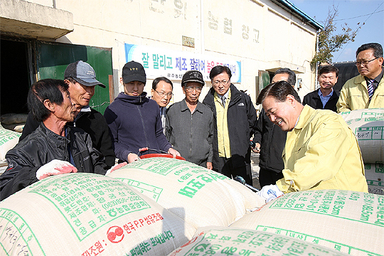 이날 안성면 상산고 매입장을 방문한 홍낙표 무주군수는 수확기 쌀 수급안정대책 종합상황실에서 벼 작황을 점검하고, 농민들이 좋은 등급을 받을 수 있도록 매입대상 농가에 대한 농민들을 격려하는 한편 벼말리기 등 현장 지도를 강화하도록 지시했다.