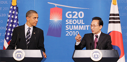 한편 이날 오전 서울 워커힐호텔에서는 '서울 G20 비즈니스 서밋'이 세계 34개국 120여명의 주요 기업 CEO들이 참석한 가운데 열렸다. 비즈니스 서밋은 무역, 금융, 녹색성장, 기업의 사회적 책임 등 4개 의제별로 3개씩 소주제에 대해 토론한 뒤 G20 정상회의에 보고서를 제출할 예정이다.