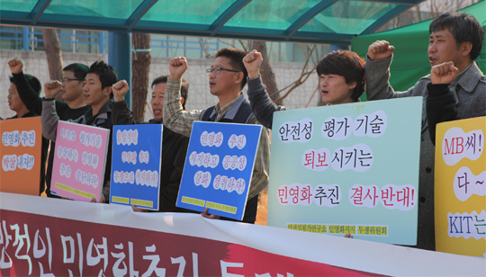 또 "지식경제부는 내부적으로도 공공기관 선진화 정책 추진 실적에 치중하여 KIT의 민간매각에 대한 사전검토를 생략하고, 단순히 정부지원필요성, 불공정 시장경쟁 상황 등 정책적 상황만을 고려하여 최종 매각결정을 내렸다"며 철회를 촉구했다.