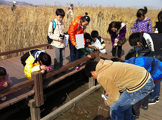 학생들은 이날 순천만 자연생태관에서 갯벌과 철새에 대한 오리엔테이션을 가진 뒤 갯벌에 살고 있는 짱뚱어, 방게 등 다양한 생명종과 순천만을 찾아오는 청둥오리, 노랑부리저어새, 물수리, 민물도요 등의 철새를 관찰했다.