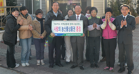 농협 무주군지부(지부장 이재덕)는 23일 농촌지역 저소득 및 소외계층 지원을 위해 농산물상품권(300만원)을 무주지역 자활센터에 전달했다.