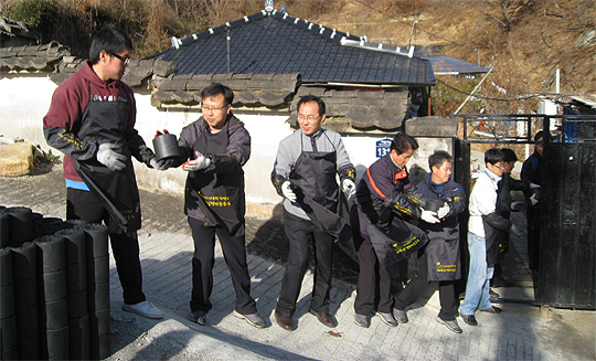 이날 캠코 전북지사 직원 15명은 연탄배달부로 구슬땀을 흘리며 저소득층에 연탄을 전달했다.