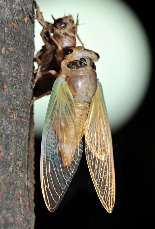 사진은 2008년 7월 16일 전주시 중노송동에서 촬영한 매미의 우화 과정이다.