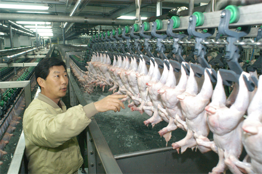 화마를 딛고 재기를 준비 중인 (주)하림 익산공장 김홍국사장이 새롭게 단장된 도계공장을 둘러보고 있다. (desk@jjan.kr)