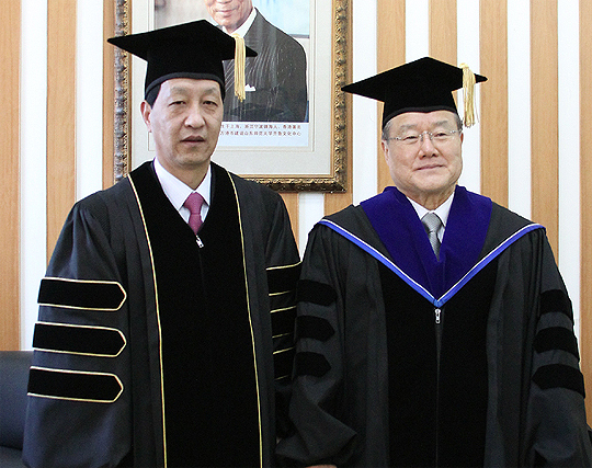 우석대로부터 명예 교육학박사를 수여받은 자우엔시우(趙彦修) 산동사범대 총장은 2000년 우석대와 산동사범대 간의 첫 교류 이후, 2004년 양교 합작 국제경제통상대학 설립, 2007년 동북아연구소 설립, 2009년 공자아카데미 설립 등 양교의 발전과 국제교류활성화에 기여해 왔다.