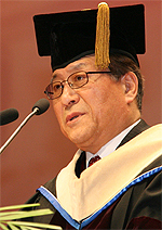 23일 원광대 제11대 총장으로 취임한 정세현 박사가 대학경영에 대한 포부를 밝히고 있다. (desk@jjan.kr)