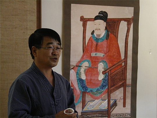태산선비문화사료관 안성렬 관장이 최치원 영정에 대해 설명하고 있다. (desk@jjan.kr)