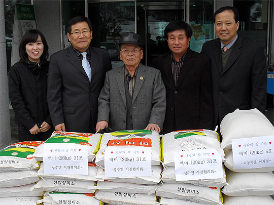 이종신 성수면장은 "추운 날씨에 얼어붙은 마음들이 이웃사랑 나눔의 손길을 통해 녹는 것 같다"며 "이분들의 마음을 쌀(37포)과 함께 어려운 이웃에게 그대로 전달하겠다"고 말했다.