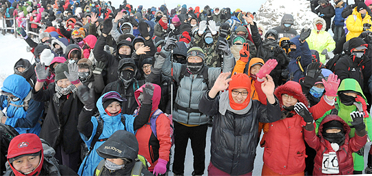 신묘년 첫날인 1일 무주 향적봉에서 첫 일출을 보기위해 전국에서 몰려든 시민이 새해 해맞이를 하며 소원을 빌고 있다.