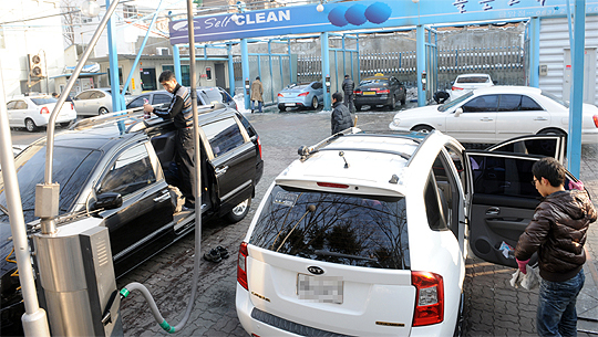 붐비는 세차장 3일 전주 한 셀프세차장에서 운전자들이 많은 눈이 쌓인 도로를 주행하며 생긴 얼룩과 염화칼슘 등을 제거하기 위해 세차하고 있다.