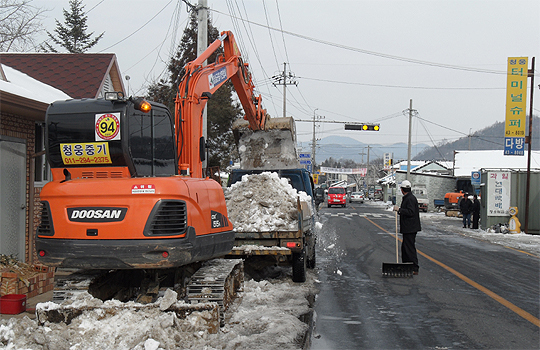 이같은 소식을 접한 회원들은 자신들이 보유한 굴삭기와 트럭 등을 동원해 쌓인 눈과 빙판 제거에 구슬땀을 흘린 것으로 알려졌다.