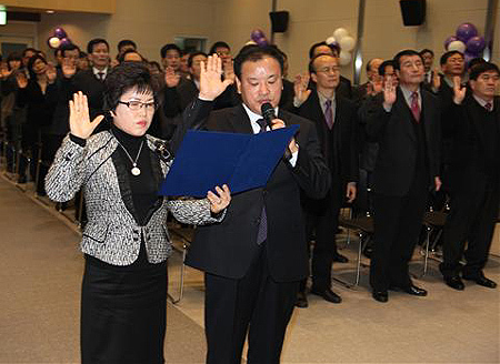 체신청 직원과 관내 총괄국장 등 100여명이 참석한 가운데 열린 이날 시무식은 우수공무원과 모범공무원에 대한 표창 수여와 함께 2011년도 고객만족경영 발대식, 최우수청 달성을 위한 결의문 선서 등으로 진행됐다.