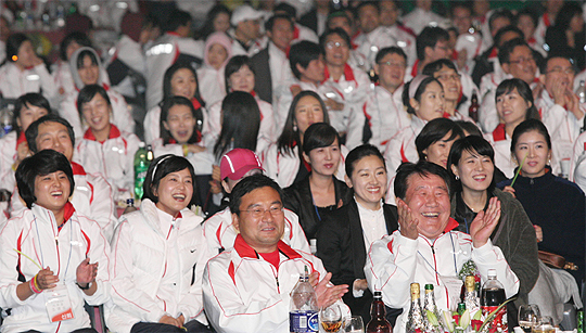 2008년 11월 전주에서 열린 이스타항공그룹 한마음 전진대회에서 이상직 회장과 임직원들이 장기자랑을 보며 즐거워하고 있다. 이스타항공그룹은 매년 가을 전주에서 그룹차원의 축제를 갖는다. (desk@jjan.kr)