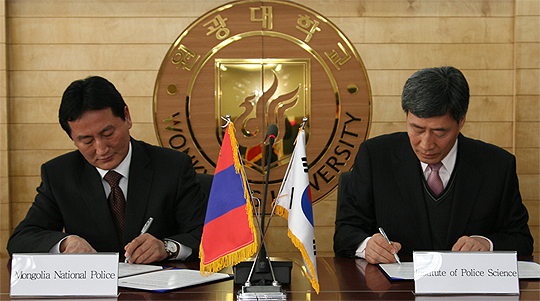 원광대 경찰학연구소(소장 양문승)와 몽골경찰청이 10일 원광대에서 연구 활동 및 정보협력에 관한 국제학술교류 협정을 체결했다.