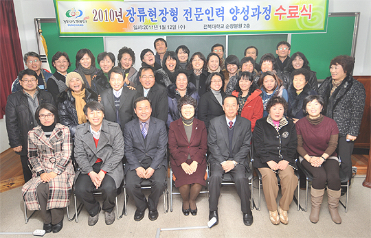 순창군은 교과부로부터 지난 2년간 최우수 평가를 받아 전북대와 공동으로 운영한 제3기 장류현장형 전문인력양성 전문 심화과정을 마치고 이달 12일 전북대학교 순창분원에서 수료식을 가졌다.