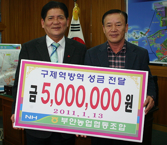 부안군 관내 6개 지역농협중 최대 규모를 자랑하는 부안농협(조합장 김원철)은 구제역 방역기금으로 500만원을 부안군에 이달 13일 전달했다.