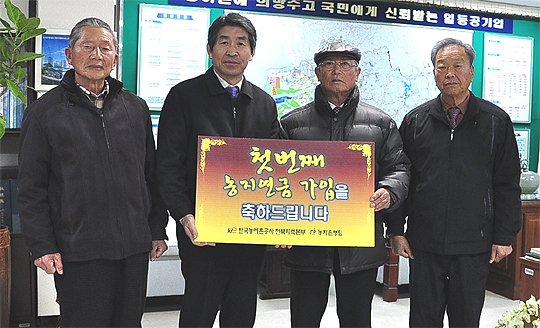한국농어촌공사 전북지역본부(본부장 서삼석)는 14일 농지연금가입을 기념하기 위해 제1호~3호 가입자를 초청해 기념품을 전달했다.