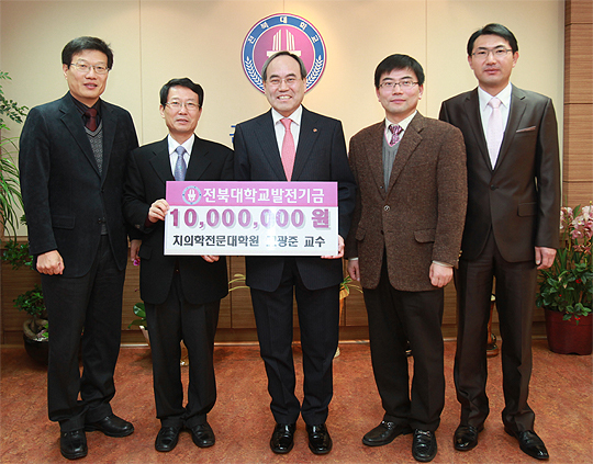 전북대 고광준 교수(치의학전문대학원)가 17일 대학발전기금 1000만원을 쾌척했다.