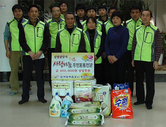 한국농어촌공사 동진지사(지사장 김대영)는 설 명절을 맞아 24일 관내 사회복지시설인 노인복지전문 성암복지원을 방문, 준비해간 생필품 등을 전달하고 청소 등의 봉사활동을 실시했다.
