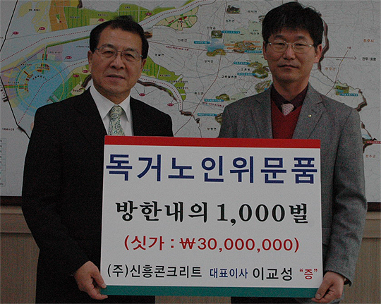 김제시 금구면 소재 신흥콘크리트(대표 이교성)는 이달 24일 설 명절을 맞아 관내 홀로사는 노인들에게 전달해 달라며 방한내의 1000명분(시가 3000만원 상당)을 김제시에 전달했다.