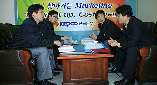 KEPCO 전북본부가 신설한 'Profit 창출 팀' 직원들이 회의를 하고 있다. (desk@jjan.kr)