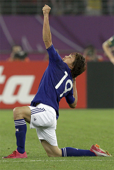 일본도 전반 17분 혼다 게이스케가 장거리 무회전 프리킥을 시도했지만 볼이 수비벽에 맞고 골키퍼 앞에 떨어지고 말았다.