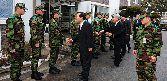 이날 위문방문에는 이강수 군수, 이만우 군의장, 송광석 2대대장 등을 비롯한 통합방위협의회 위원들이 참여했다.