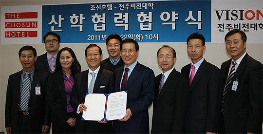 이에 대해 홍순직 전주비전대 총장은 "이번 협약을 계기로 우수한 인재 양성에 더욱 힘써 비전대를 졸업하고 조선호텔에 취업한 학생들이 호텔의 발전을 위해 크게 활용될 수 있도록 할 것"이라고 강조했다.
