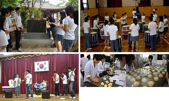 (왼쪽 위부터 시계방향)보고서 작성반 학생들의 탐방활동, 난타동아리 '두드리'의 연주모습, 제과·제빵기능사반 학생들의 실습장면, 그룹사운드동아리'루미너스' (desk@jjan.kr)