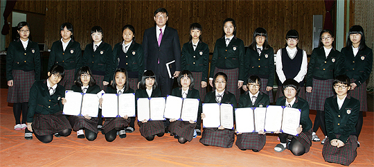 정일여중은 2일 입학식에서 신입생 207명 전원에게 6000원 상당의 교통카드를 지급했다. 또 신입생 평가에서 성적이 우수하고 품행이 단정한 학생 90명에게 30만원에서 1만원까지 교통버스 장학금 275만원을 지급했다.
