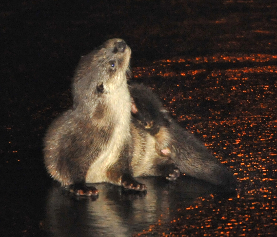 해를 넘겨 2009년 1월 13일부터 잠복을 시작, 2월 2일 새벽 3시 23분 드디어 새끼를 데리고 나온 수달부부를 만났다.