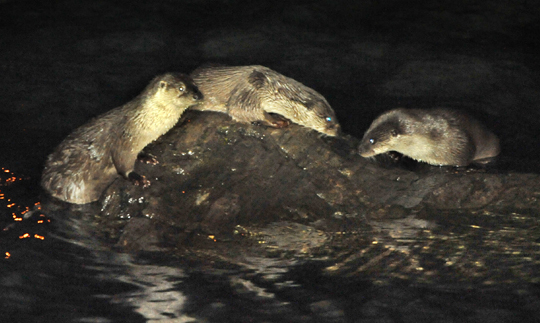 전주천에 살고 있는 수달 가족이 새해 나들이에 나섰다. 좀처럼 한 곳에 모이지 않던 수달 가족을 2009년 2월 2일 새벽 3시 24분 치명자산 앞 쪽 전주천 수중바위에서 만났다.