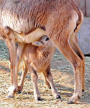 수과의 야생 산양인 '무풀론' 새끼가 어미 젖을 먹고 있다. 안봉주(bjahn@jjan.kr)