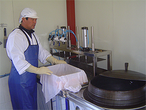 "전기를 사용하는 최신식 기계이지만 솥단지로 콩물을 끓이는 등 전통적인 방법으로 두부를 생산합니다. 원료인 콩의 품질이 우수해 두부의 맛이 좋을 수 밖에 없습니다"