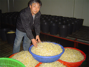 장 대표는 "2년전부터 콩나물 콩 원료인 유태를 확보하고 기술을 배우는 등 철저하게 준비했다"면서 "농민들이 콩으로 파는 것보다 콩나물로 팔면 부가가치가 5배 이상 오른다. '아삭하고 고소하다'는 평을 받고 있는 콩나물 생산량이 많아지므로 로컬푸드는 물론 학교급식·콩나물국밥집 등으로 판로를 넓혀갈 것"이라고 말했다.