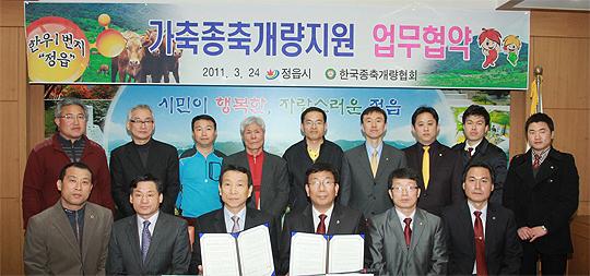 정읍시와 한국종축개량협회는 24일 정읍축산업 발전을 위한 종축 개량지원업무의 상호 긴밀한 협조체계 구축을 위한 MOU를 체결했다.