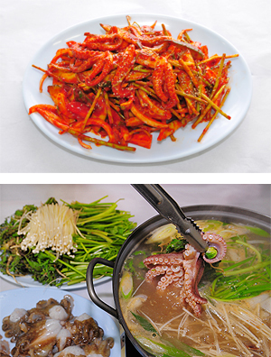 (위)주꾸미 무침, 주꾸미 샤브샤브 (desk@jjan.kr)
