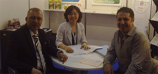 2009년 스위스 네제바에서 열린 비타푸드 박람회에 참석한 김현진대표가 바이어들과 상담하고 있다. (desk@jjan.kr)