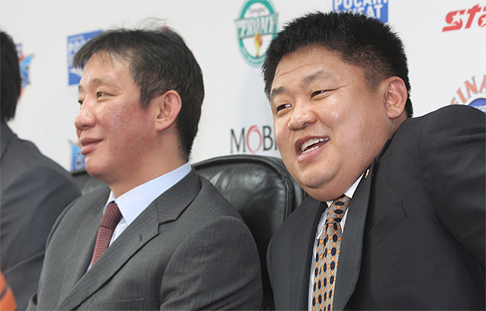 13일 오후 서울 논현동 KBL 센터에서 열린 2010-2011시즌 현대모비스 프로농구 챔피언 결정전 미디어데이 행사에서 전주 KCC의 허재 감독(왼쪽)과 원주 동부의 강동희 감독이 챔프전에 임하는 각오를 밝히고 있다.