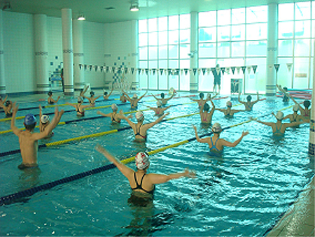 아쿠아로빅은 물속에서 하는 에어로빅으로, 관절염 환자의 치료에 큰 도움을 주며 다이어트에도 효과적인 운동이다.